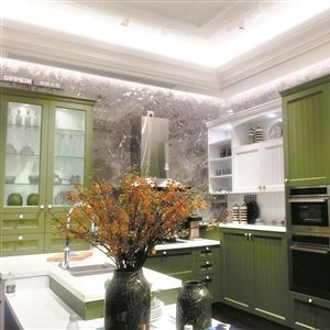 设计大咖从米兰看展回来认为绿色是流行色,这款橱柜新品柏翠正是绿色主调。