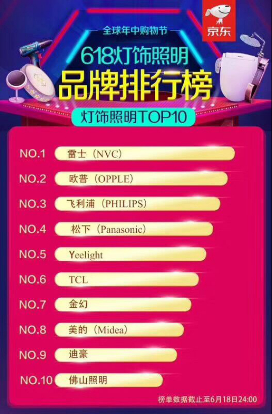 上图:京东618灯饰照明品牌排行榜