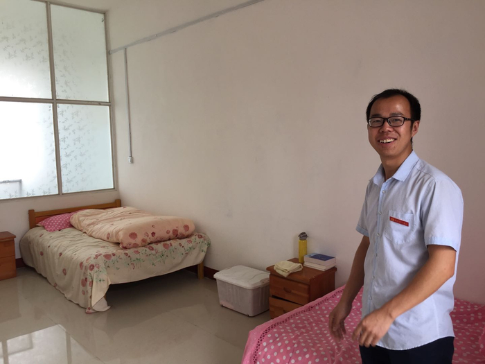 高连成宿舍内布局很是简单,只有两张床和两个床头柜。澎湃新闻记者 张家然 图