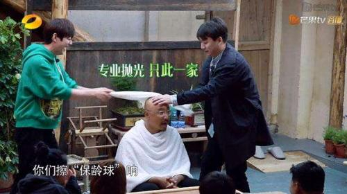 截图:何炅和黄磊在给徐峥洗头