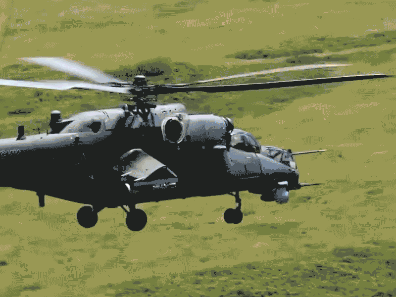 米-35M使用机头双联23毫米Gsh-23L航炮开火动态图。