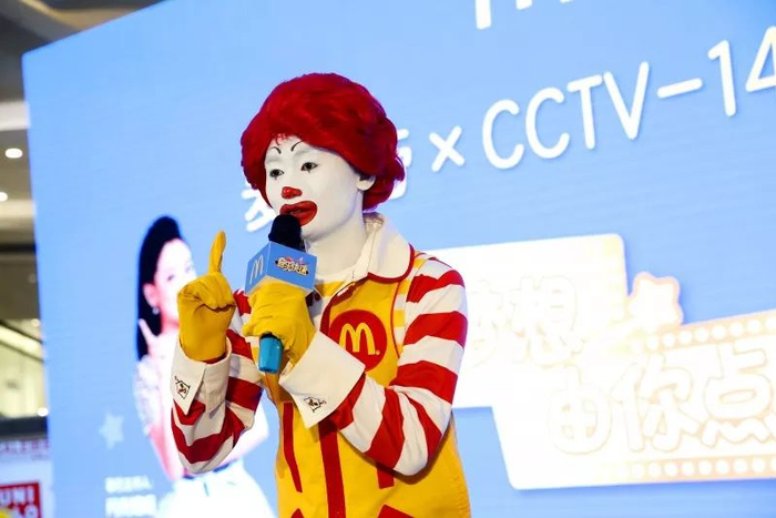 “麦当劳叔叔 ”意外登场20名小选手一一演唱完毕后,在评委们公布最终晋级结果之前,深受小朋友们喜爱的麦当劳首席快乐官“麦当劳叔叔 ”意外登场,赢得小朋友的一阵欢呼声!