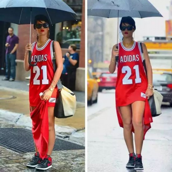 下半身失踪的穿搭法,简直就是姑娘们的必备穿搭。宽大球衣变作了连衣裙,帅气有型,又能添加了一丝凉意。这种简单的穿法简直就是Riri的最爱。