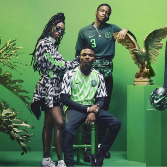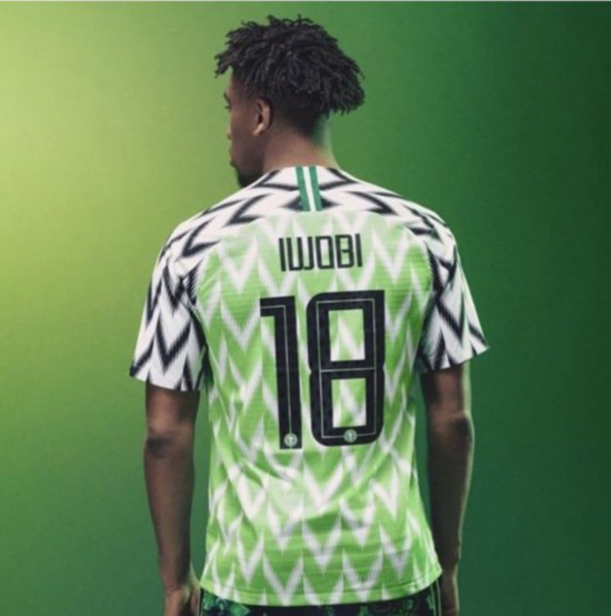 这次世界杯中队服卖得最好的是尼日利亚,青柠色、白色相间的V形条纹组成,两臂则有黑白相间的锯齿状条纹,象征着尼日利亚足球队吉祥物雄鹰的翅膀。