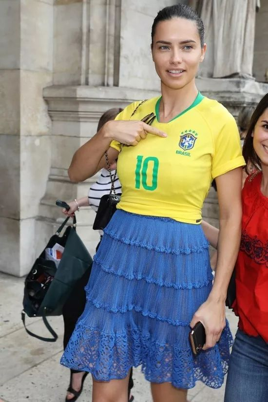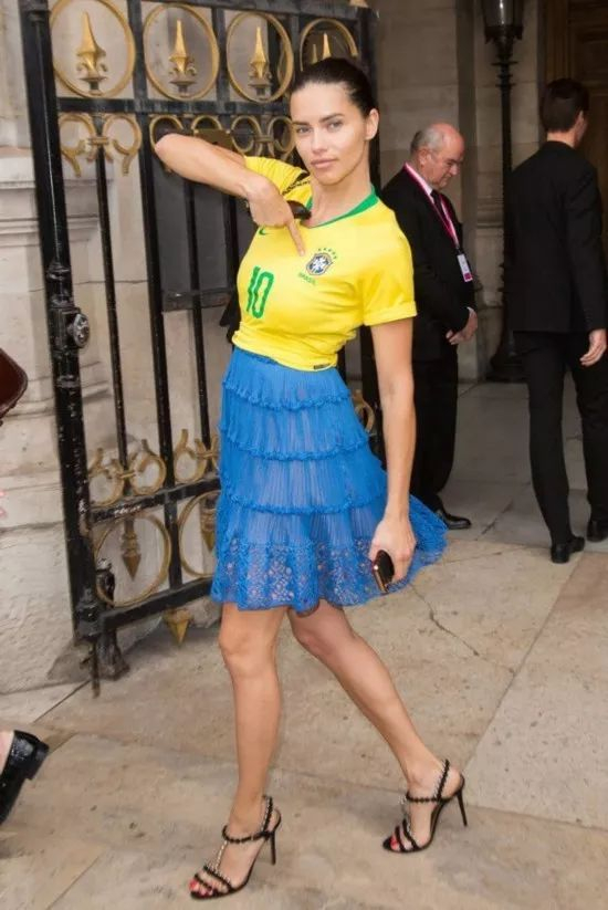 而在2018秋冬巴黎高定时装周期间,阿德里亚娜·利马穿巴西队服支持祖国。