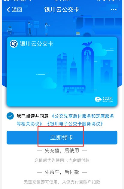 然后【领取】银川云公交卡