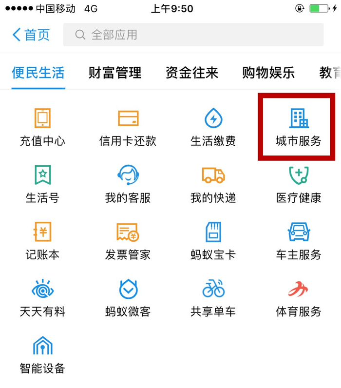 选择【城市服务】菜单