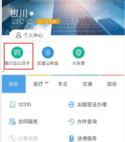 在页面点击【银川云公交卡】