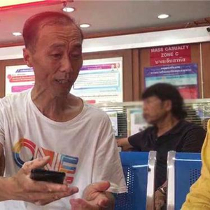 7日,在收治伤员的普吉岛瓦其拉医院,郑兰庆坐在门口的露天椅子上,手里抱着家人的衣物,他一直在等待遇难家人的消息。