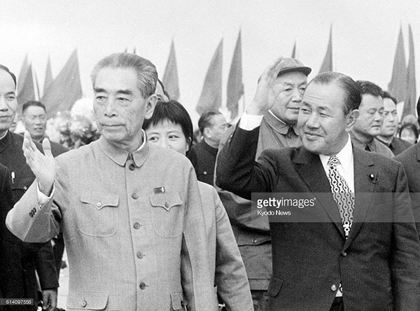 周恩来总理和田中角荣在上海虹桥机场会面