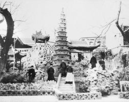 民国年间的太原四美园,背景为精美别致的琉璃塔。
