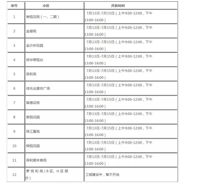 为方便用人单位了解房源情况,根据项目建设情况,广州市住房保障办将于7月13日-7月15日,在相关房源点现场开放参观。根据开放日具体安排,除了萝岗和苑仍在工程建设中,不开放参观外,其他11处房源,均开放参观。