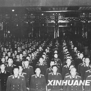 1955年9月27日下午,中华人民共和国主席授衔授勋典礼在北京中南海怀仁堂隆重举行。这是授衔授勋典礼现场。新华社资料图