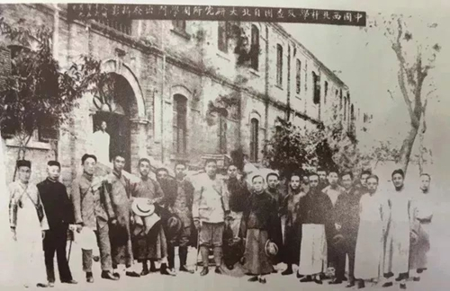 1927年,北大考古学会联络有关学术团体与瑞典探险家斯文赫定合组中瑞“中国西北科学考察团”,中方团员10人主要为北大师生。图为中方团员从北大研究所国学门出发时与欢送者合影。左八为团长徐炳昶,左十一为送行者刘半农。