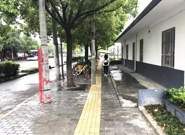 发现问题后,梅陇镇第一时间联系相关施工单位,重新铺设电线杆和固定绳附近的盲道,消除安全隐患。目前整改已经完成。