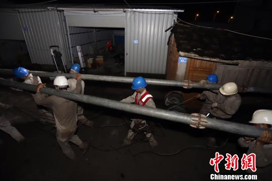 图为国网宁德供电公司抢修人员连夜冒雨抢修10千伏金蛇头分支线。郑廷裕 摄