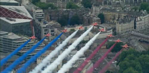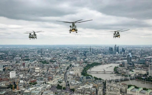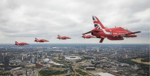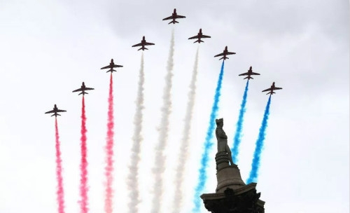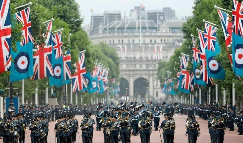 7月10日,英国皇家空军(Royal Air Force,简称RAF)举行100周年特别庆典,103架自1918年起各个年代代表机型组成的飞行编队从伦敦市中心低空飞过。