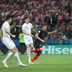 ▲克罗地亚队球员曼朱基奇在比赛中射门得分。 图片来源:新华社