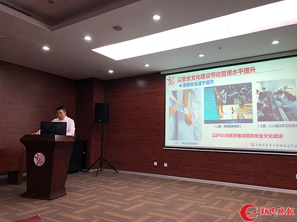 图说:龙华医院院长肖臻介绍医院JCI认证 来源/新民晚报记者 左妍 摄
