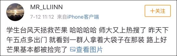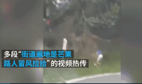 诸多市民一大早就拿着麻袋在路边捡芒果,网友们戏称:“玛莉亚”是来帮忙摘芒果的吗?