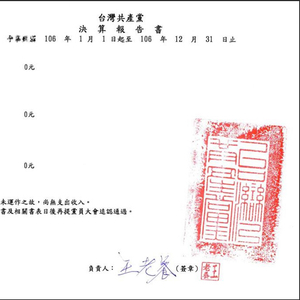 从“内政部”公布的财务报表来看,尚存4个以“共产”为名的政党,其中两个尚未申报,1个虽申报,内容却不合规定待补正,仅“台湾共产党”依“政党法”完成申报,并符合规定。但唯一通过申报的这个,却因久未运作,收支均为零。