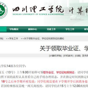 四川理工学院计算机学院官网发布了《关于领取毕业证、学位证和报到证的通知》。官网截图四川理工学院将更名为四川轻化工大学,但更名引发了“后遗症”。
