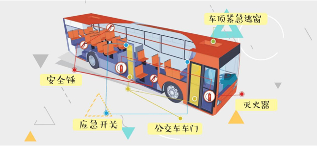 公交车上有五个逃生的关键部位:
