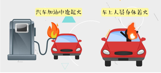 汽车加油中途起火:立即停止加油,疏散人员,将车开出加油站。