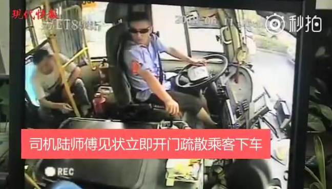 公交车驾驶员陆培胜发现情况不对后,立即开车门指挥疏散乘客有序下车。