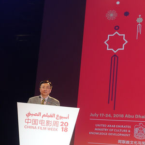 2018年7月15日,由中宣部、中国国家电影局、阿联酋媒体委员会、阿联酋文化与知识发展部、阿布扎比旅游文化局、中国驻阿联酋大使馆共同主办的“中国电影周”在阿布扎比玛娜奥萨迪亚特中心剧院举行开幕式。中宣部常务副部长王晓晖、中国驻阿联酋大使倪坚、阿布扎比旅游文化局主席穆巴拉克、电影《滚蛋吧,肿瘤君》主创人员一行等中阿各界人士200 余人出席。