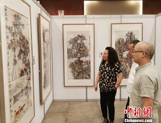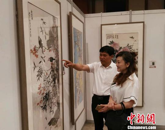 中新网乌鲁木齐7月16日电(记者 戚亚平) 16日,为期六天的“回梦丝路-2018河南书画名家走进新疆作品展”在乌鲁木齐市开展,共展出河南省当代书画名家张剑锋、杨杰、刘杰、李明等60多位书画家创作的100余幅思想精深、主题突出、风格鲜明的精品力作,是河南省当代知名书法家和画家群体在新疆的一次集中展示。