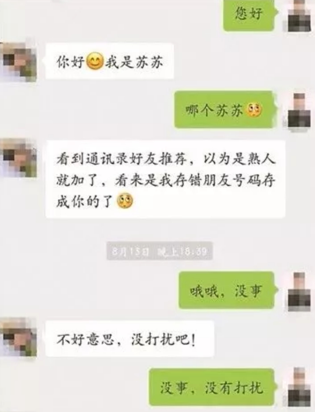据田天提供的聊天截图显示,“苏苏”最早添加他为好友时,自称“在通讯录里看到了你的联系方式,就加了好友”,并借口旧微信号不常使用,让田天加自己的小号。这一情节与广州番禺区检察院公开的案件十分相似,嫌疑人通过购买原本已经加有好友的微信号获取了受害人联系方式。但据其他受害人介绍,也有“骗子”是直接通过手机号检索,好友申请中往往会强调本来就有受害人联系方式。