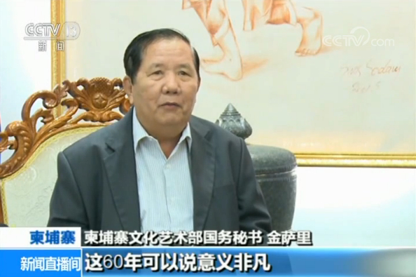 柬埔寨文化艺术部国务秘书在接受央视记者采访时表示,中柬两国有着深厚的历史渊源和坚实的友谊,两国在60年来通过在文化方面的合作增进了人民之间的相互了解。