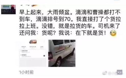 这几天,北京的大雨给交通造成了不小的影响,打出租车、叫网约车都要排队等待较长时间。此时,网上开始出现用“货拉拉”约个货车去上班的消息。