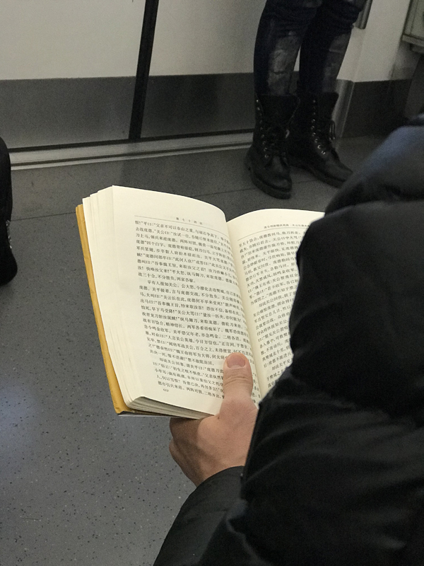 摄于2018年2月26日。地铁换乘,上车发现面前这位在读《禅与摩托车维修艺术》,因为我对这本书也很感兴趣,当时特别想搭讪问问这书是不是真如传说中好看,可是胆小……这张也是我今年拍到的第一张地铁上的读书人。