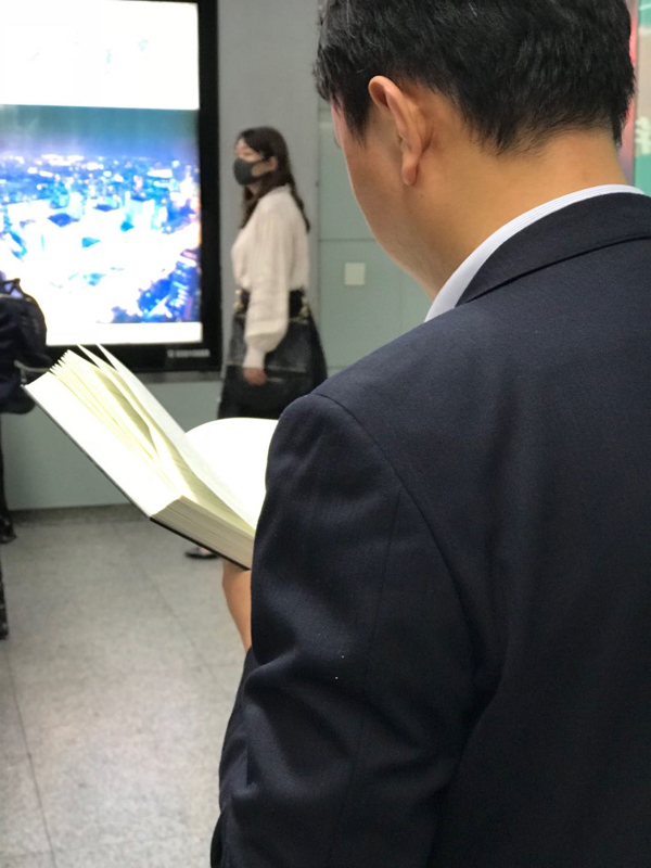 朋友们看了这些照片,有的也变成北京、南京、上海、杭州地铁读书人的记录者。当然,最使我欣慰的是有人因此而感动或自责,进而也带着书上地铁,或者在任何方便的时候翻开书来。唤起一颗又一颗热爱阅读的心,于我就是做了一件大善事了。