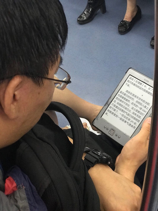 摄于2018年5月30日。一个把kindle用到掉漆的大叔。