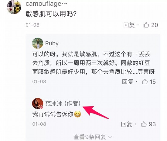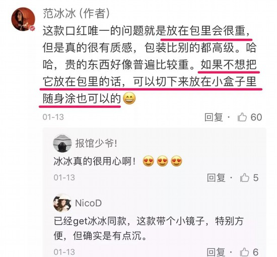 除了每次长篇分享自己的爱用好物和美容方法,冰冰有空的时候也会认真回复网友留言,完全不会敷衍。女神要亲自试过才能回答,不会草率回复哦!