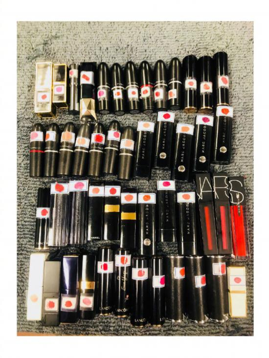 口红还专门在每个标签上涂了一点点,这样一眼就能辨识出是什么颜色,