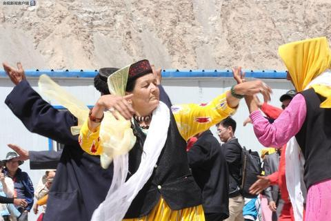 △皮勒村村民广场上 塔吉克族奶奶忘情地跳起鹰舞