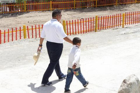 白T恤大叔就是巴县长嘴里的“老小孩”、皮勒村的扶贫第一书记,热书记。热书记不姓热,他是自治区的干部,维吾尔族人,大家习惯称他为热书记。巴县长说,我们之前没有去过皮勒村的,不觉得皮勒村变化大,但他们的感受是不一样的。一个小细节就是,村委大院后面的男女厕所里,隔板上安上了卫生纸卷筒,这个小变化就是热书记带来的。