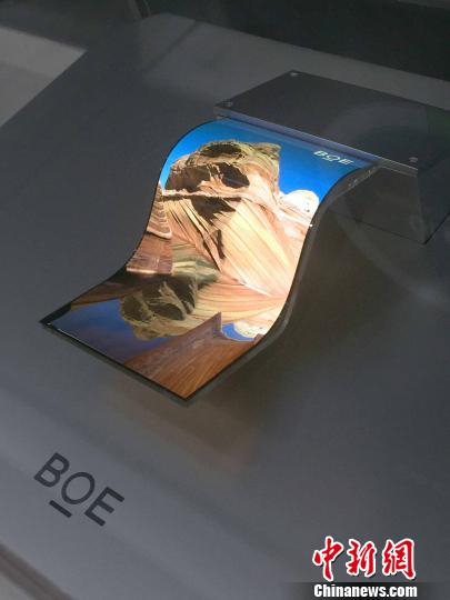 图为京东方科技集团股份有限公司研发的AMOLED技术柔性显示屏。2018年前5个月,京东方出产的智能手机液晶显示屏、平板电脑显示屏、笔记本电脑显示屏、显示器显示屏、电视显示屏出货量均居全球第一。 陈建 摄