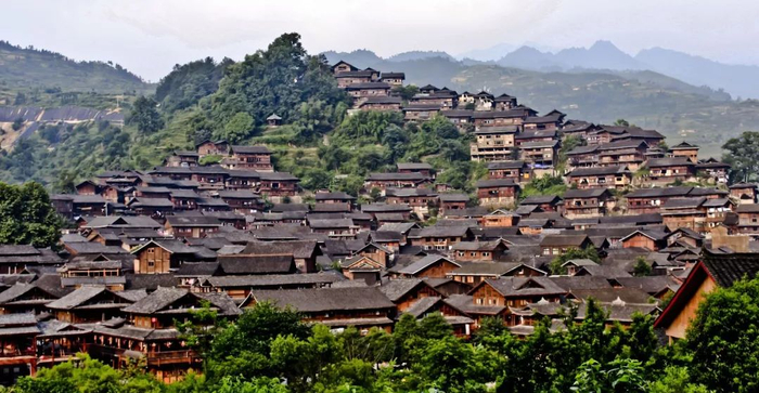 西江苗寨,郁郁葱葱的雷公山白水河畔的一颗明珠。