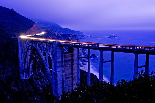 2017年3月,1号公路大瑟尔北入口菲佛峡谷大桥因暴雨冲击致桥体开裂,同年10月已修复通车。(摄于2009年2月29日)