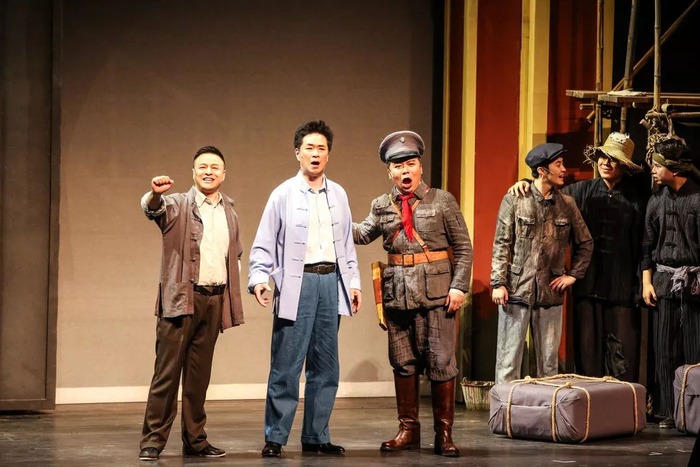 贺老主张在发展中国已有的音乐之外,与全世界音乐界发生联系,他的名曲《牧童短笛》打破了中国音调与西洋乐理的界限。因此,在《贺绿汀》剧本构思阶段,我们就确立了基于中西合璧探索音乐创新的思路。剧情取舍裁量、唱词语感文风,要有利于音乐创作突破西洋歌剧的程式和腔调。和声构造、旋律处理兼用中西方之法,构成独特的中国风。“湖南花鼓”“岭南丝竹”“洋场小调”“苏北民歌”……不同场景增加了音乐风格的地域化特征;贺绿汀、姜瑞芝、丘东平、秋乔、大将军等不同性格的人物,为音乐形象具象化(包括声种、唱法)设计奠定了坚实的戏剧基础;而《热风吹过枝上》《牧童短笛随想》《你是革命的贝多芬》等剧中唱段,把家国情怀和艺术情怀一同放在中国现代历史的进程之中,彰显出歌剧“歌”的魅力和“剧”的价值。