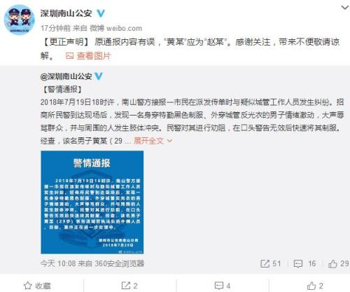 原标题:深圳一城管外聘人员与群众发生肢体冲突被民警制服