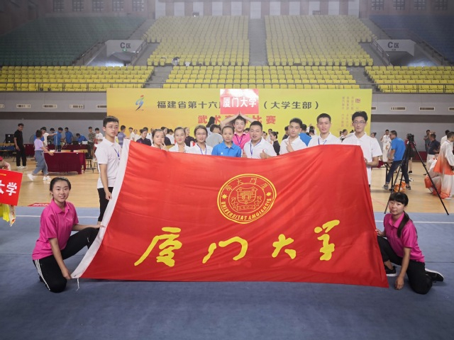 2018年7月14日至19日,由福建省教育厅、福建省体育局主办,集美大学承办的福建省第十六届运动会(大学生部)武术套路比赛在集美大学举办。本次比赛有来自福建省内27所高校近200名运动员参加,厦门大学武术队由体育教学部副主任吴飞腾担任领队,林晓群和李松两位老师担任教练,派出11名运动员参加此次赛事中的甲A组 18项、甲B组15项个人赛以及甲A组集体太极拳等项目角逐,夺得了23金、7银、3铜,同时获得甲A组女子团体第一名、甲A组男子团体第二名的喜人成绩。