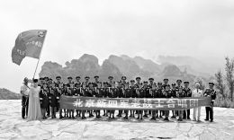 开国将军后代及新四军老战士合唱团在王莽岭高唱《在太行山上》。