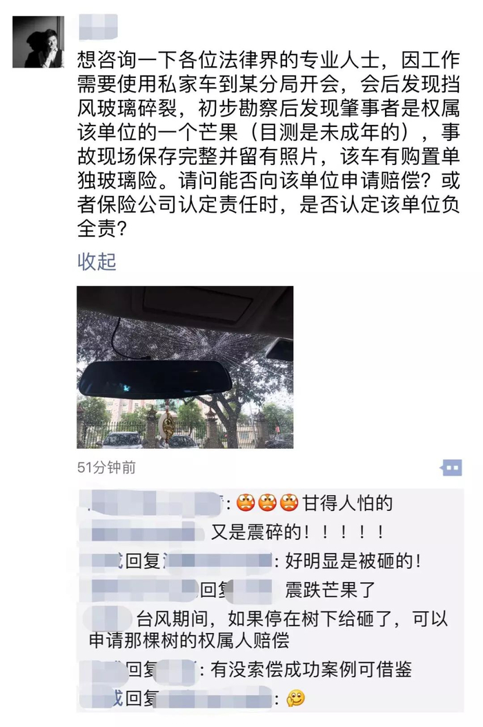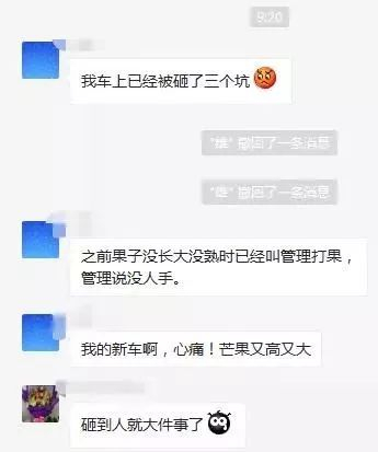 李先生的经历不是个案。近日,一车主在自己的业主群里“吐苦水”,吐槽“芒果砸车”。