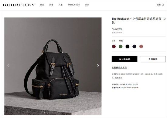 以该品牌最便宜的帆布背包为例,这款商品在英国官网上的售价为890英镑,约合人民币7800元;但该款商品在其中国官网上的售价则为9600元,比英国官网贵了1800元,价格增幅超过24%。